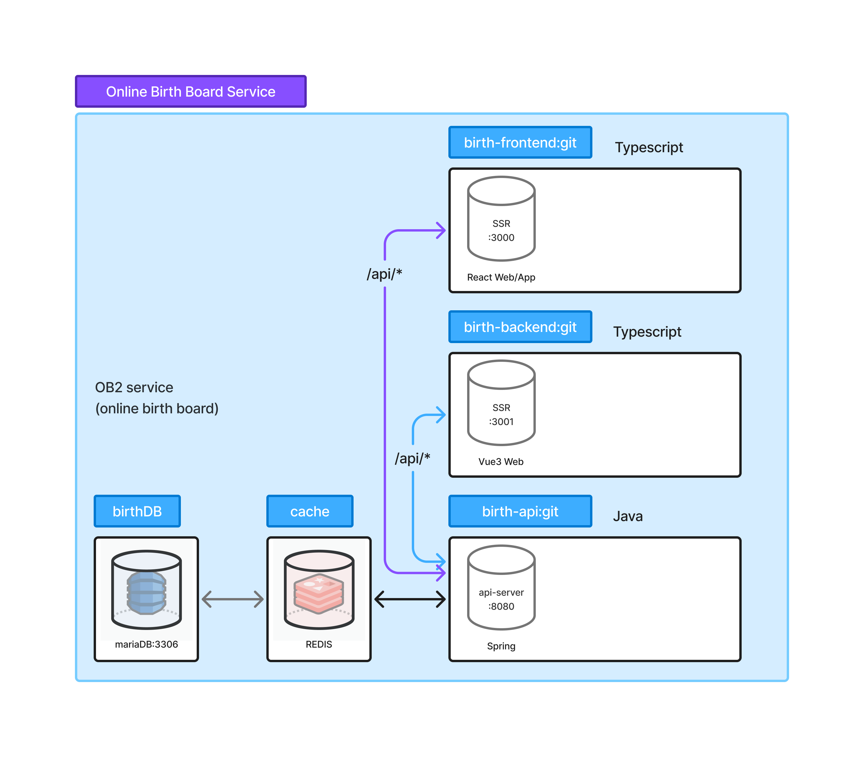 - fo와 bo를 분리하여 서비스 신청 및 관리는 bo에서, 서비스 이용은 fo에서 하도록 구성